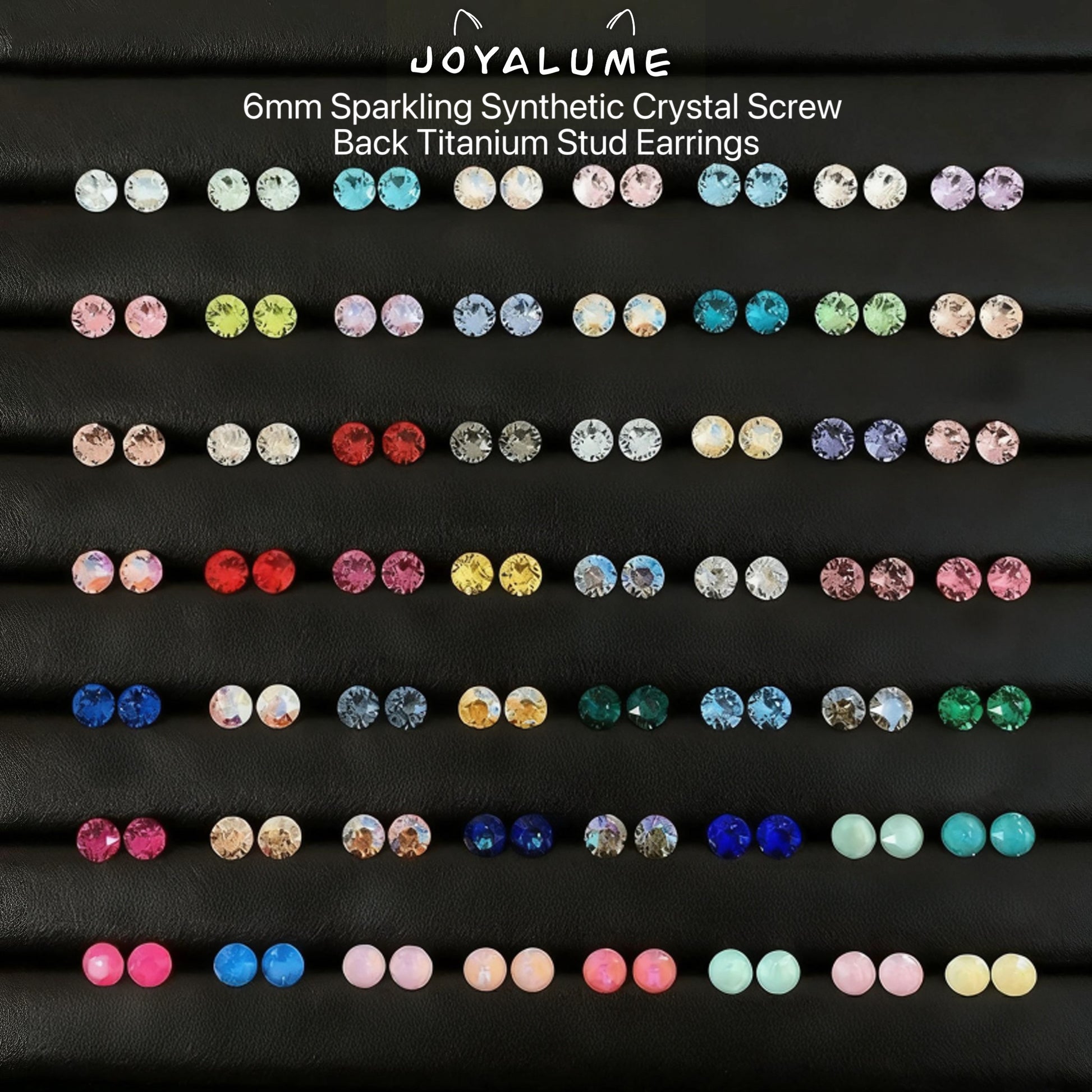 6mm Sparkling Synthetic Crystal Screw Back Titanium Stud Earrings